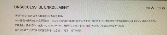 據目前掌握到的信息來看,EVUS登記失敗一般會出現兩種狀態: