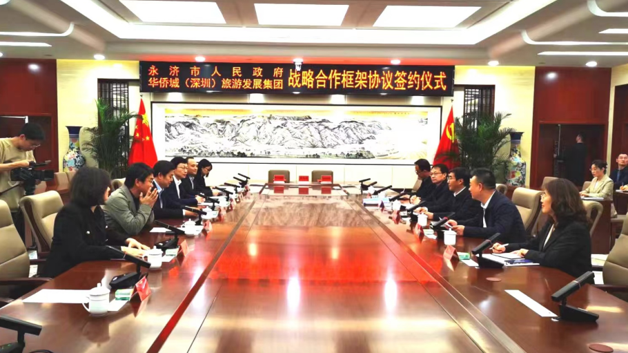 ▲永濟市與華僑城旅發公司戰略協議簽約現場