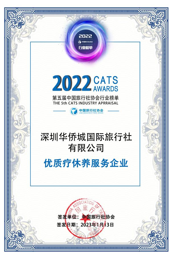 日前,中國旅行社協會發布第五屆中國旅行社協會行業榜單,華僑城旗下華僑城旅行社再次入選“旅行社品牌20強”,并榮獲“優質療休養服務企業”獎項,企業綜合實力再獲行業認可。.